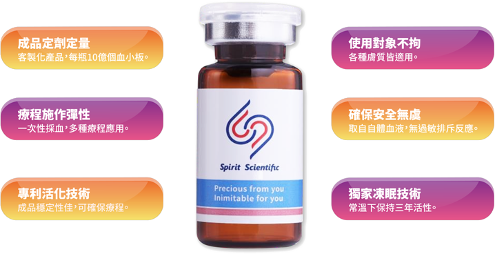 「PLT凍晶為新型態血小板精煉技術,從PRP中萃取小於1%之最有效成分,比PRP生長因子高5~8倍,使用上也更加便捷不受限制。」